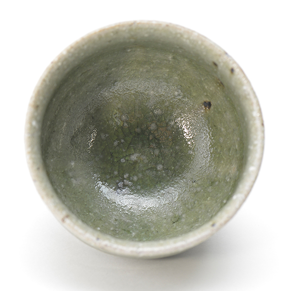 松を使った灰釉による明るいグリーンのグラデーションが美しいぐい呑です。
