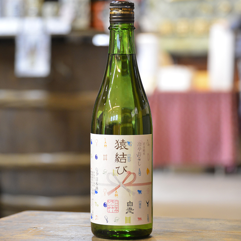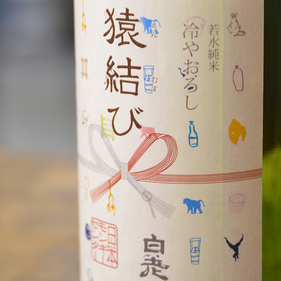 若水純米冷やおろしをモンキーセンター特別ラベルで。