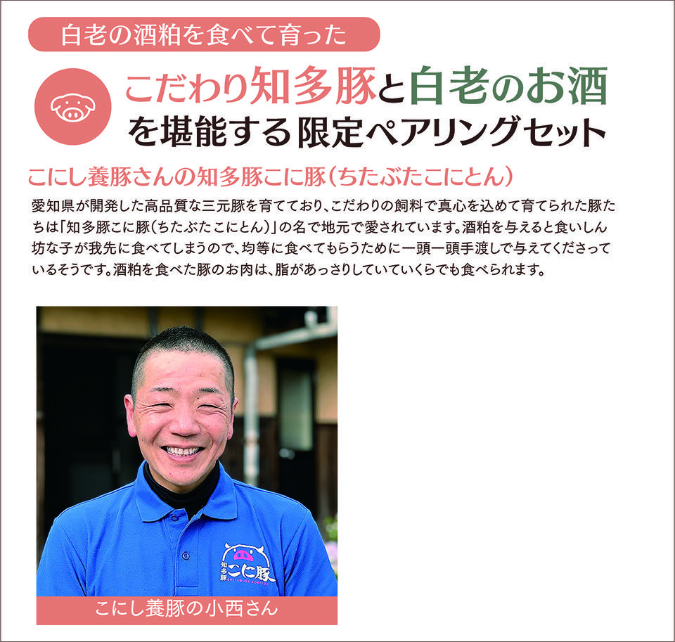 他の画像を見る 【Eセット】こにし養豚さんのこに豚しゃぶしゃぶセット(2~3人前)× 初しぼり 白老(720ml) 予約商品 予約販売価格 ¥ 7,480 税込 こちらは予約商品です 予約受付期間 2025/11/17 0:00 〜 2025/12/12 23:59 香りと甘みが豊かなお肉をフレッシュなしぼりたて新酒が香り・味ともに引き上げるしゃぶしゃぶペアリングセットです。 カートに入れる お気に入りに登録する