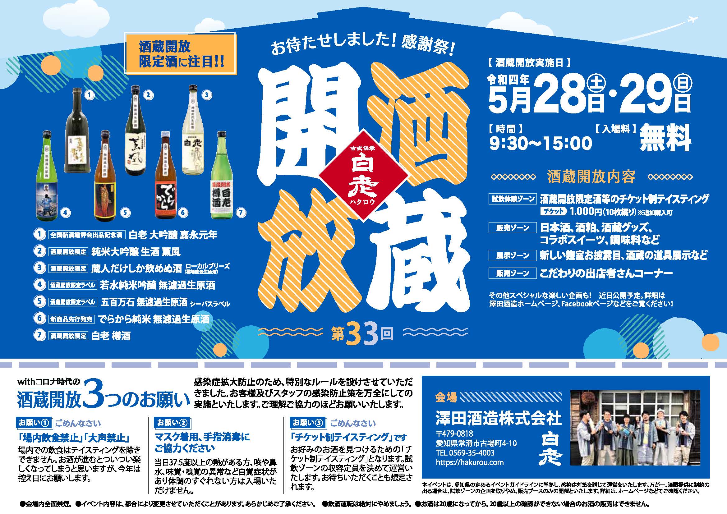 5月28日(土)29(日)第33回酒蔵開放のチラシはこちらです。