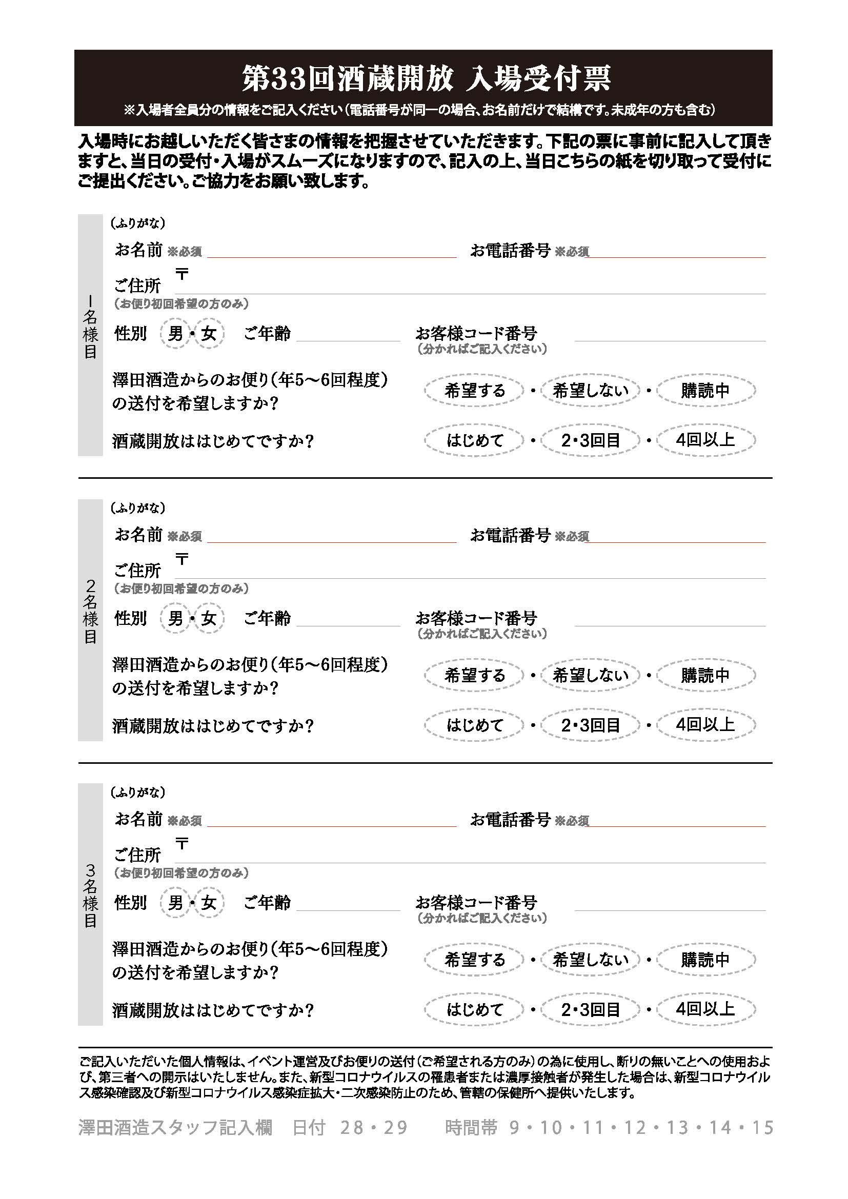 コロナ対策として、お名前とご連絡先を回収しております。 受付票に記載の上お越しいただくと受付がスムーズです。