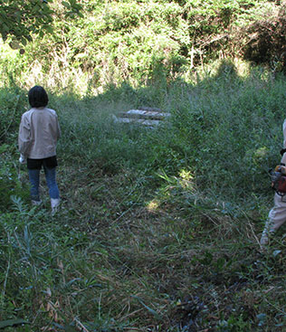 写真は毎年行っている井戸換えの様子で、元水の湧き出る周りの草刈、井戸の清掃を行っているところです。