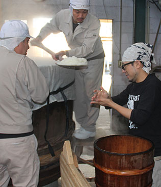 米は年度、産地、品種によって硬軟、含水率が異なるため、最高の麹をつくるためにこの蒸し米工程は大変重要です(「酒づくりは蒸しから」という言葉があるくらいです)。