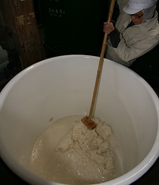 麹、蒸米、水の混合物に酵母を増殖させたものを酒母といい、アルコール発酵のための優良酵母を純粋に多量に培養する精緻な技法を用います。